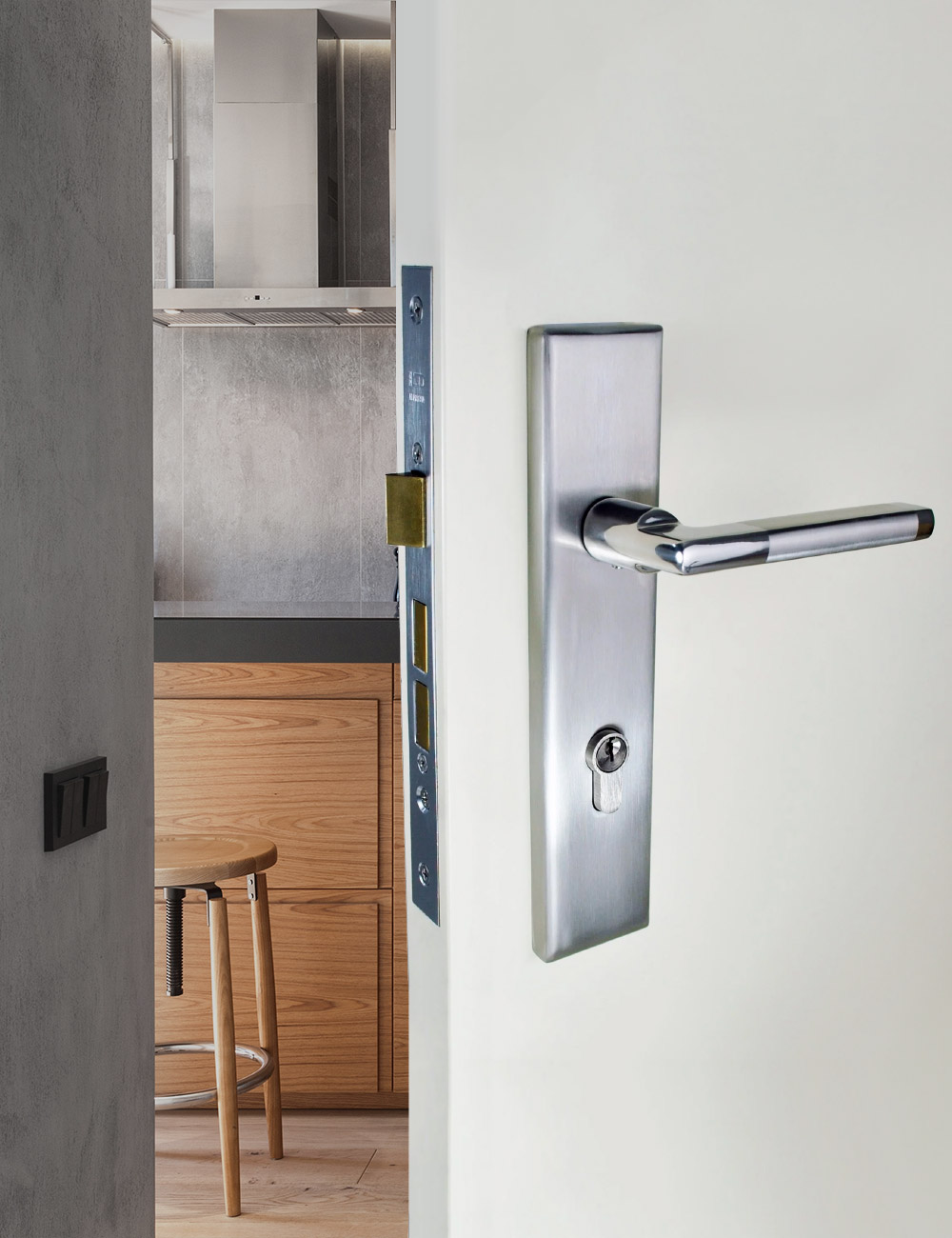 The OZI lock entrance set is a complete, all-in-one door solution combining a longplate lever or pull handle with a mortice lock mechanism. Designed for enhanced security and modern aesthetics, it simplifies specification and installation for both hinged and sliding door applications.